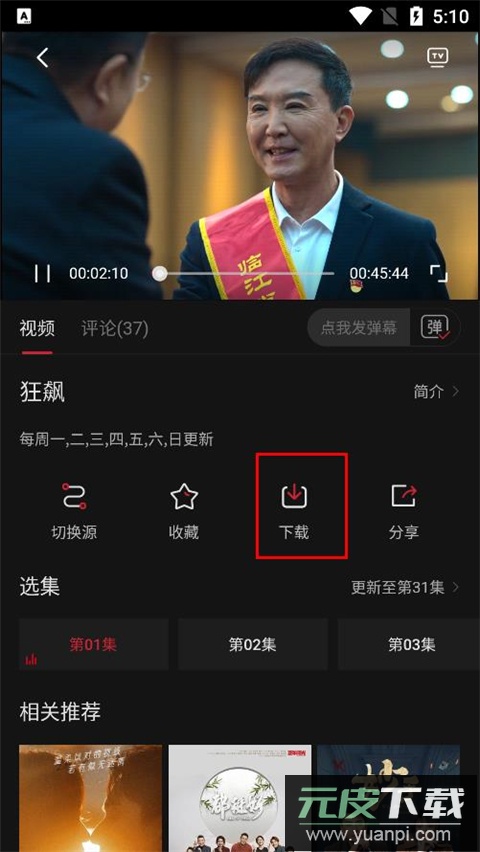 1、在剧集的播放列表页面,用户可以找到下载选项。