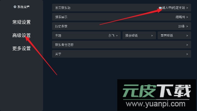 3、依次选择“高级设置”和“首页数据源”