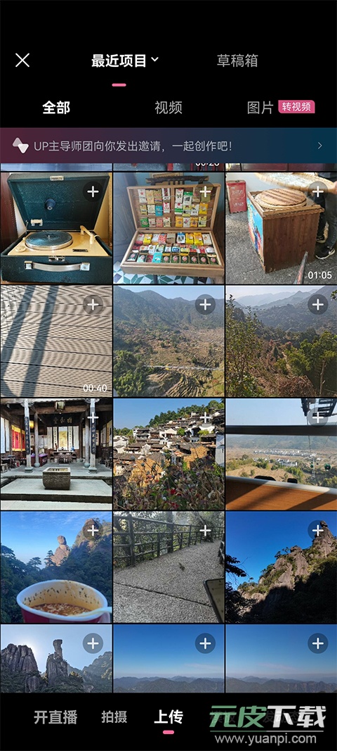 2. 投稿支持视频和图片两种形式,选择多张图片可自动合成为视频。