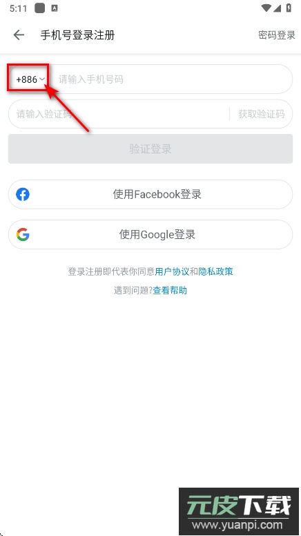 3. 接着点击手机号前的国家地区代码选择栏。