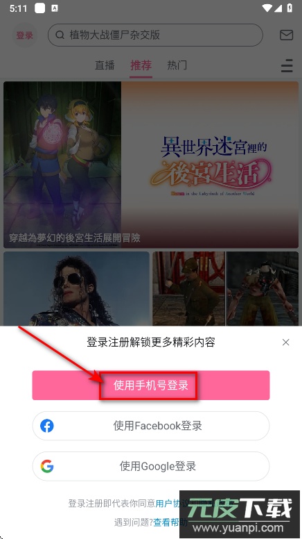 2. 在登录方式中选择手机号登录。