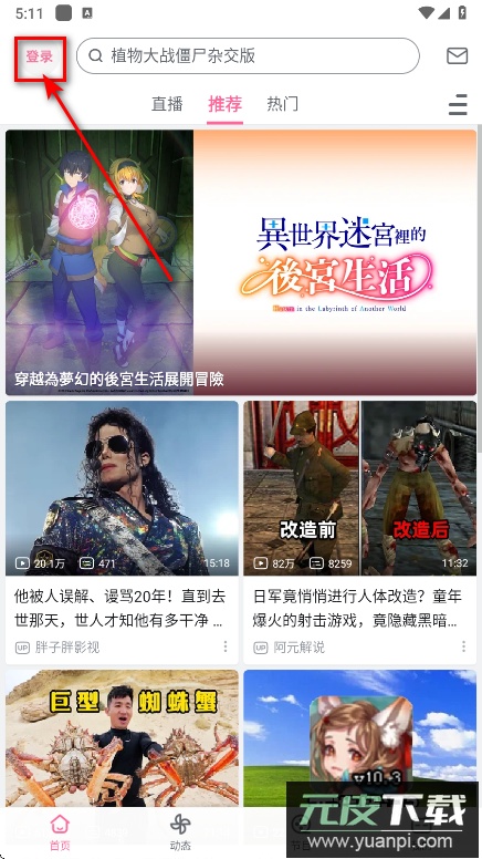 应用首页取消了游戏中心入口和顶部的滚动横幅,简化了顶部分区标签,仅保留直播、推荐和热门等主要选项,分区入口得以保留,方便用户浏览内容。