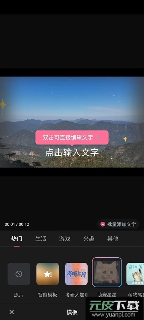 3. 添加素材后进入编辑页面,这里提供了多种流行模板可供使用。