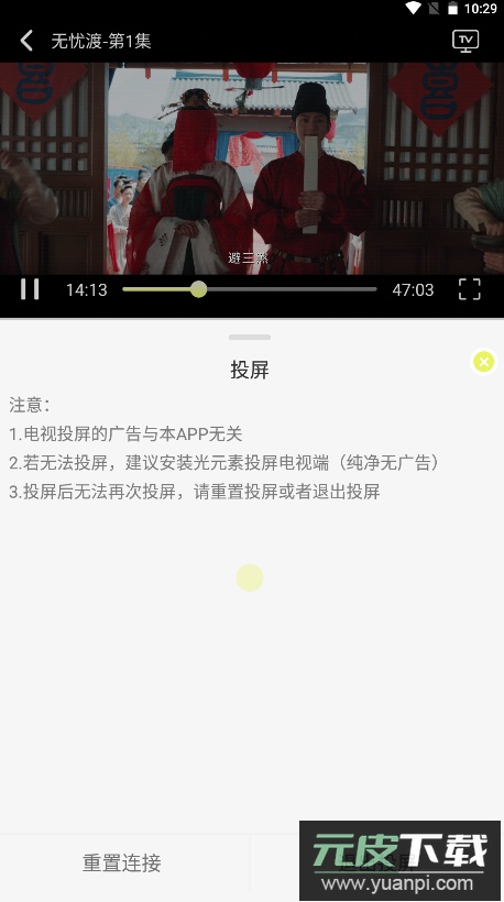 2、在播放界面点击手机屏幕,然后找到并点击投屏按钮。