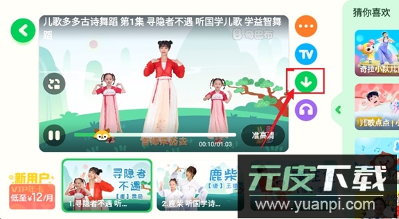 1、打开爱奇艺奇巴布应用,在首页点击任意一部动画片进入播放页面;