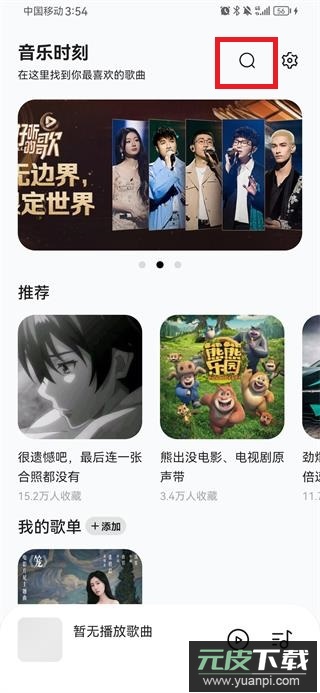 安装并打开音乐时刻应用,进入主界面,定位顶部的搜索框。