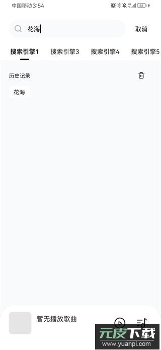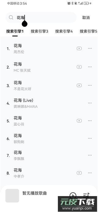 在搜索框中键入歌名进行查找,可切换不同搜索引擎以获取更多版本。
