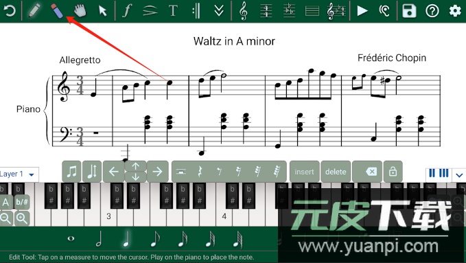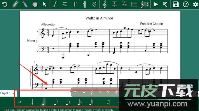 2、提供多种乐谱符号工具,方便选取和绘制各类音乐标记;