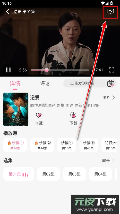 2.点击右上角的投屏图标。