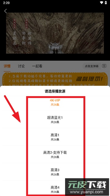 3. 在列表中选择不同的播放源进行尝试,直到获得流畅的播放效果。