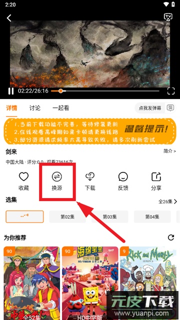 2. 进入播放页面,找到并点击屏幕下方的“换源”选项。