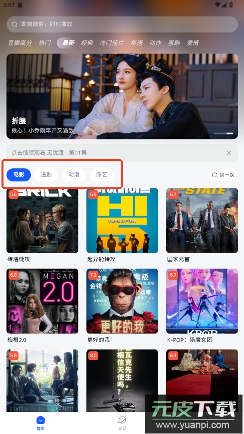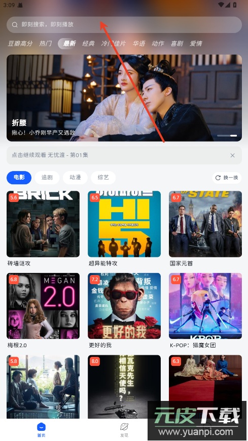 1.首页会展示当前热门的电影、电视剧与综艺,帮助你发现感兴趣的新内容。