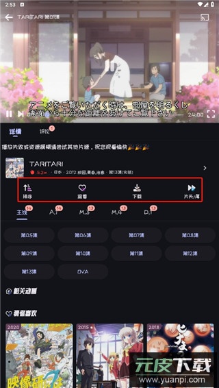 3、播放时提供多条线路选择,同时支持追番、缓存下载等实用功能;