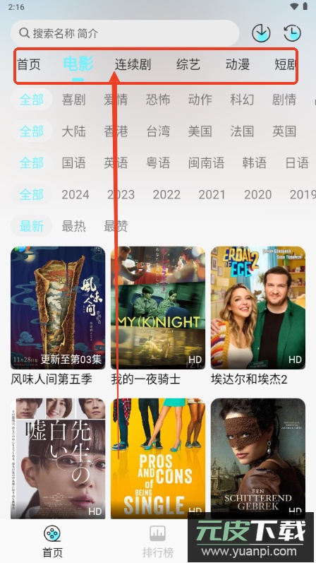 5、通过顶部分类标签,自由切换电影、电视剧、综艺、动漫及短剧等资源板块;