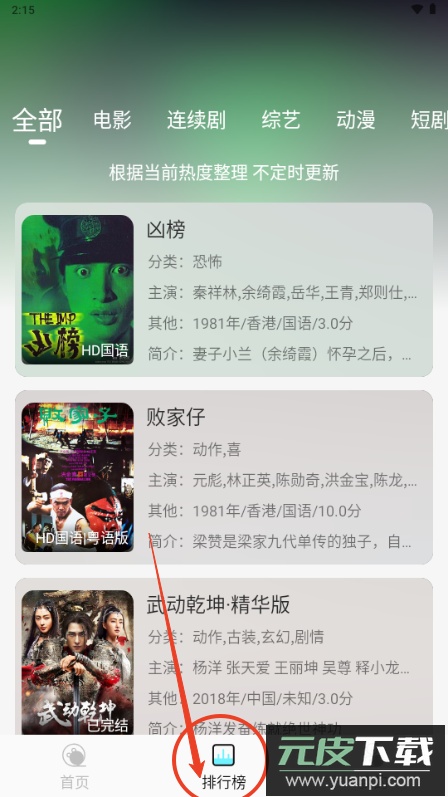 4、可以查看排行榜单,了解其他用户都在观看哪些内容;