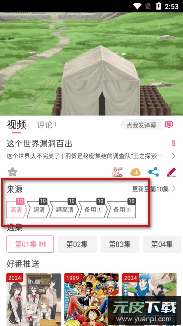 3、也可在播放页面直接点击来源选项,快速更换播放源。
