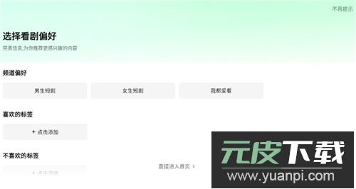 1、完成登录后,可选择个人感兴趣的看剧偏好;