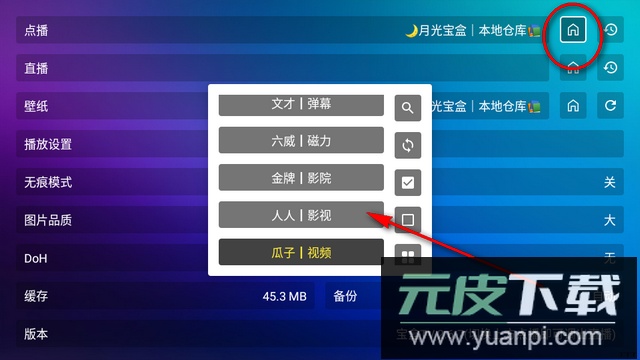 2、若需要更换片源,可进入设置界面,在点播选项中双击后方房屋形状的按钮。