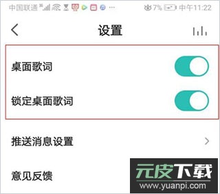 4、在设置中开启“桌面歌词”选项,并锁定歌词在桌面的显示位置。