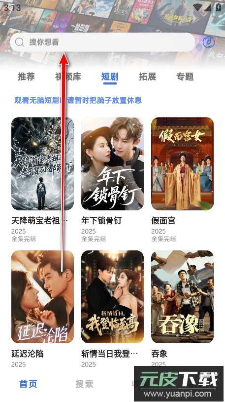 1.在本站下载并安装软件,打开后点击首页上方的搜索框。