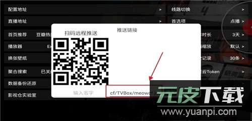 2、在配置地址栏中输入接口地址,例如:https://freed.yuanhsing.cf/TVBox/meowcf.(下文也提供了其他可选地址);