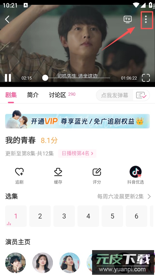2、进入全屏播放页面后,点击屏幕右上角的三个点图标。