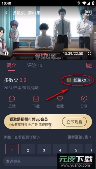 2、选择你感兴趣的动漫剧集并点击进入,在播放界面可以看到线路切换选项