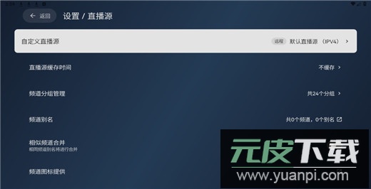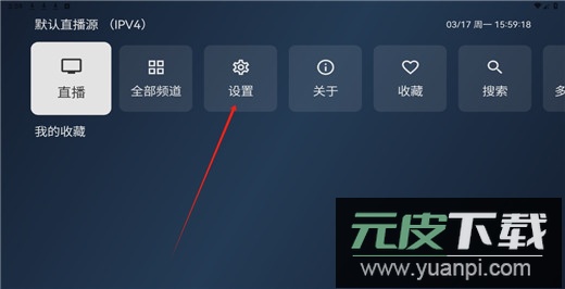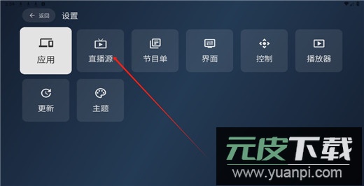 3、在设置菜单里找到并选择直播源功能;