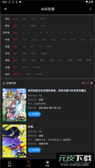 2、细致的分类系统划分出数十种动画类型,每个类别下都收录了大量内容;