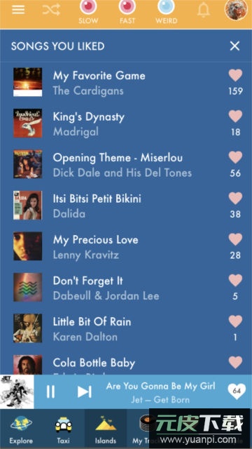 2、其中最有趣的莫过于出租车模式,用户可以设定年代范围与国家列表,应用便会像出租车一样载着你在不同年代与国家间穿梭播放音乐。