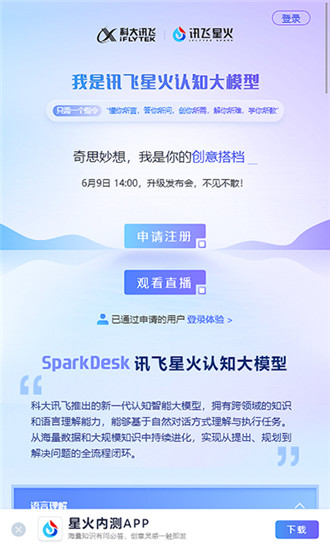 4、审核通过后,讯飞将通过短信通知您,之后在星火app中登录已通过审核的账号即可开始使用。