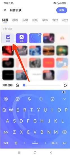 3、在个性背景选项中,点击“相册”进入本地图片选择;