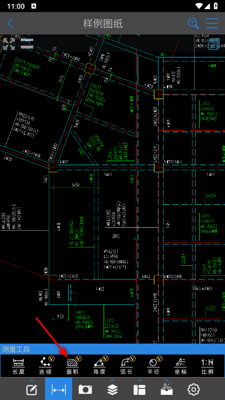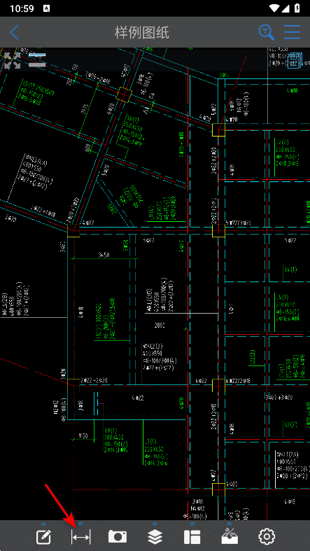 1. 在图纸界面中,点击下方工具栏的第二个测量工具。