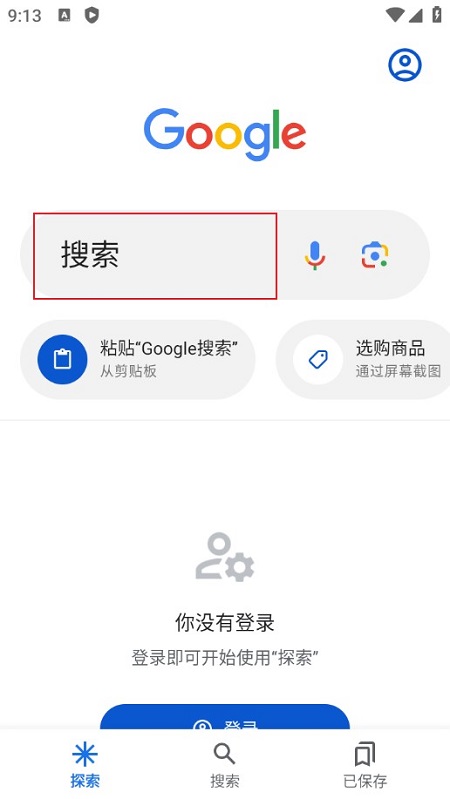 1.打开谷歌搜索页面:打开Google搜索APP后进入谷歌搜索主页。