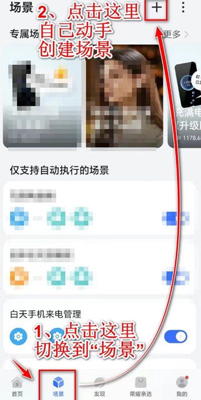 2. 找到“场景”功能入口,开始创建自动打开钉钉的智慧场景。