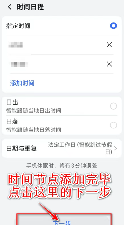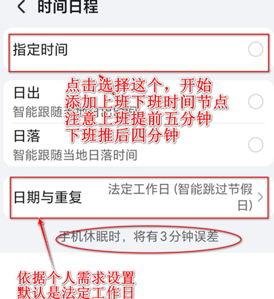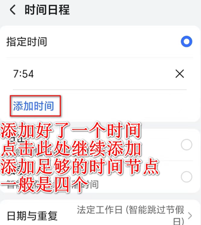 接着,点击“指定时间”,进行具体的时间点设置。