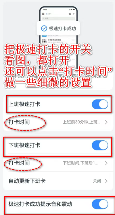 2. 在钉钉应用内开启极速打卡功能。如此便能实现上下班时间自动打开应用并完成打卡的自动化流程,大大提升便利性。具体设置步骤如下: