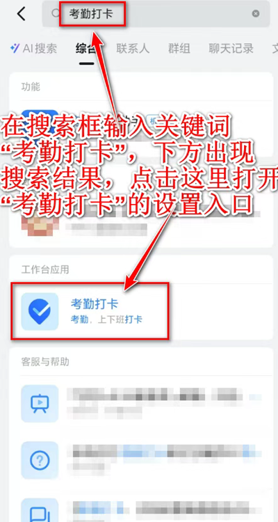 打开“钉钉”应用,若不想按部就班地点击“工作台”再寻找“考勤”入口,这里提供一个快捷思路:利用应用内的搜索功能。只要看到搜索框,即可输入关键词快速定位所需功能。如图所示: