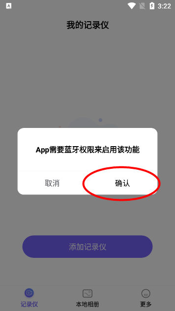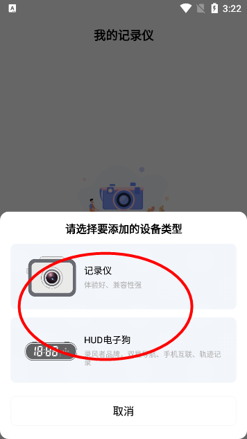 打开录风者APP,点击添加记录仪选项。