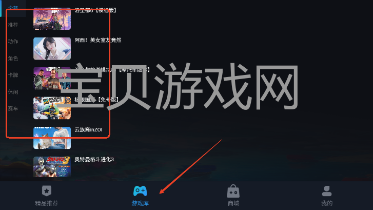 2、进入游戏库页面,可按分类筛选感兴趣的游戏;