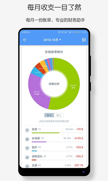 从多个维度分析用户的日常消费情况,有效帮助使用者理清自身的消费结构