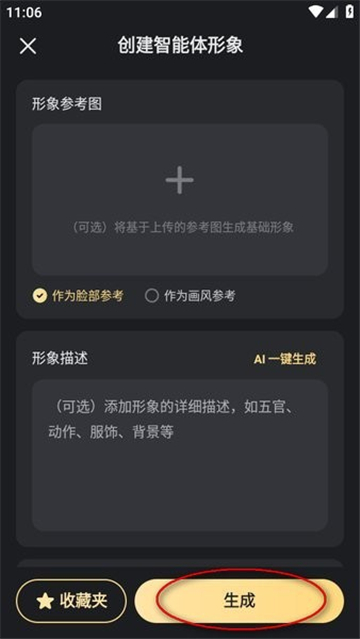 2. 上传形象参考图并填写形象描述,随后点击“生成”按钮;