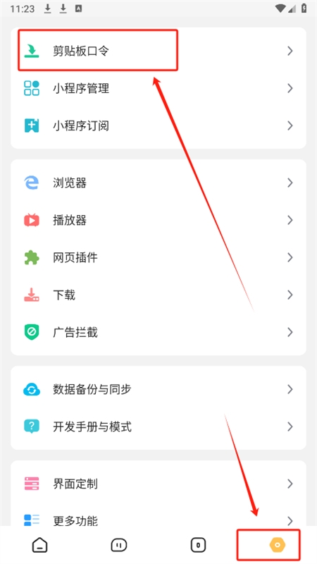 1、首先安装软件,进入设置页面,找到剪贴板口令功能。