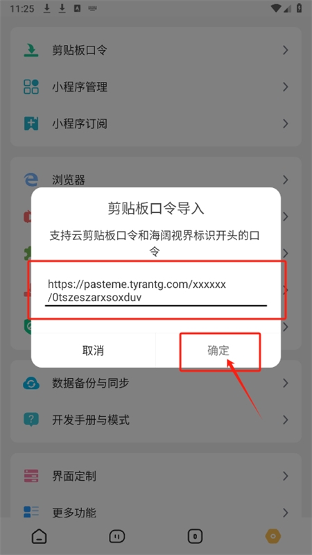 2、在输入框中粘贴或键入规则口令,点击确认。