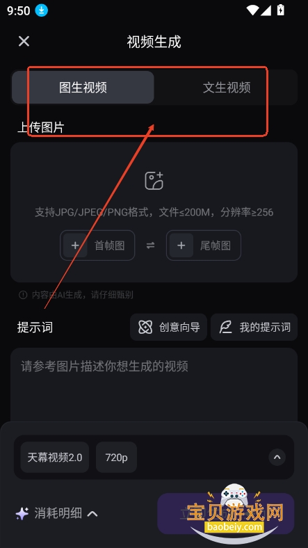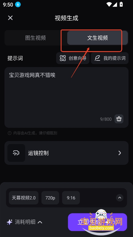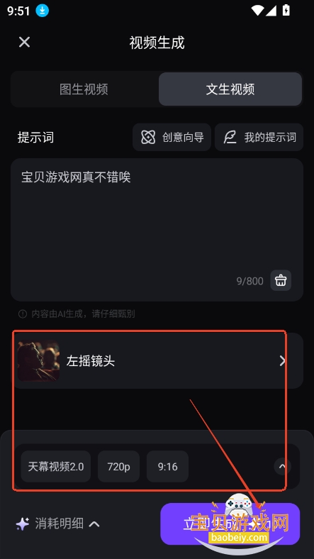 2、功能支持文生视频与图生视频,可根据需求任选其一。