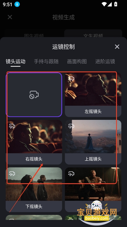 4、接着选择运镜控制方式,挑选想要的视频呈现效果。