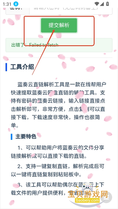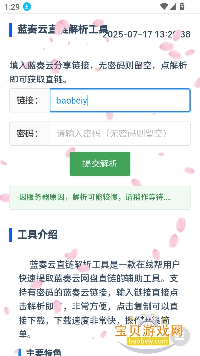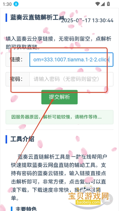 进入工具首页,在文本框内输入蓝奏云链接;密码栏为选填项,根据需要决定是否填写。