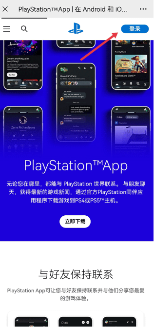 访问playstation官网,点击页面右上角的登录入口。