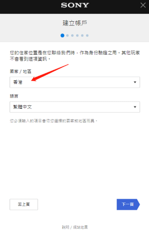填写信息时,请在国家地区栏选择香港,并按照后续指引完成注册流程。