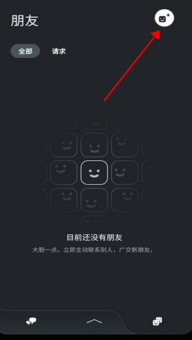 点击右上角的【笑脸】图标,可以进入好友管理页面;在这里你能与好友交流,也能通过右上角按钮添加新朋友。